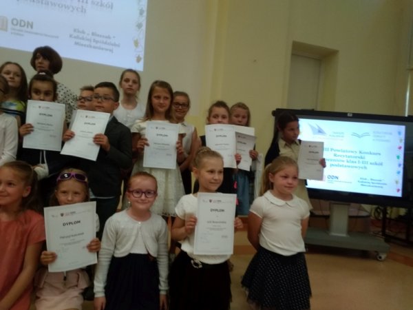 Bangrowska z klasy III b – laureaci I miejsc gminnego etapu konkursu. Dzieci recytowały utwory polskich poetów, prezentując