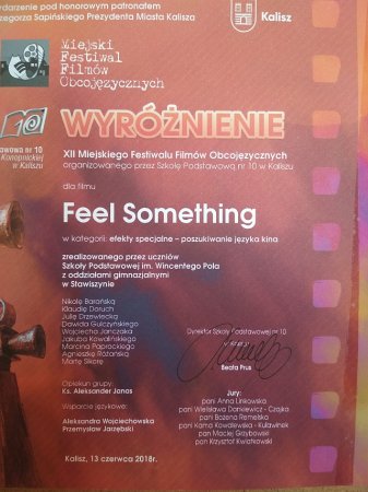 filmu „Fell something” ze Szkoły Podstawowej w Stawiszynie serdecznie