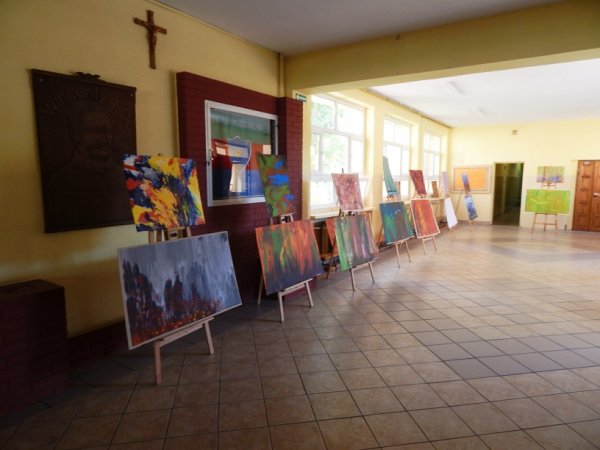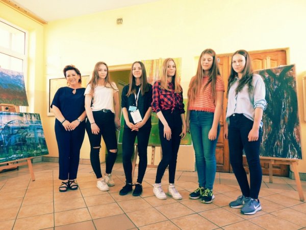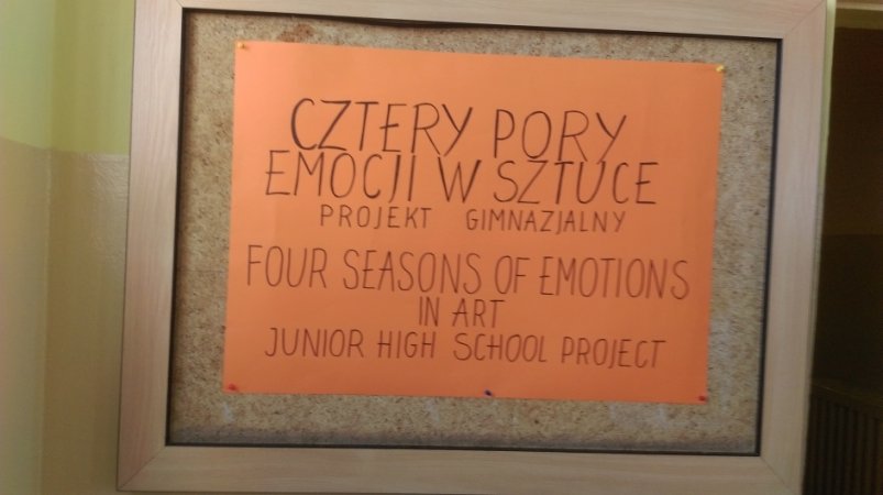 9 maja 2018r. została w naszej szkole otwarta wystawa prac gimnazjalistów: Jessiki Bartłomiejczyk, Małgorzaty Kołodziejczak, Agnieszki Kuświk, Kornelii Marek, Kingi Popiołek i Roberta Szczepaniak. Tematem przewodnim wystawionych prac były: „Cztery pory emocji w sztuce”. Opiekunem projektu była nauczycielka plastyki Izabela Drzewiecka. Praca nad projektem i przygotowania do wystawy przebiegały w ciągu dwóch lat szkolnych. Projekt miał na celu aktywne uczestnictwo i tworzenie autorskich wypowiedzi za pomocą różnych technik plastycznych oraz mediów. Uczniowie rozwiązywali problemy plastyczne w sposób innowacyjny i twórczy. Inicjowali i przeprowadzali grupowe działania nastawione na najbliższe otoczenie. Wzbudzali w sobie refleksje na temat otaczającego ich świata, odnosili emocje do ekspresji plastycznej i wewnętrznej natury człowieka. Poznali nowe techniki i sposoby ekspresyjnego wyrażania siebie w twórczej formie. Kształtowali umiejętności planowania i realizowania zadania. Byli bardzo zaangażowani w organizację wystawy plastycznej w szkole. Swoimi efektami i doświadczeniem mogli podzielić się nie tylko z uczniami naszej szkoły, ale również z przebywającymi u nas uczestnikami projektu Erasmus+ z Portugalii i Węgier.