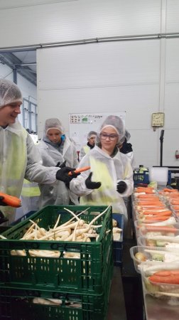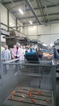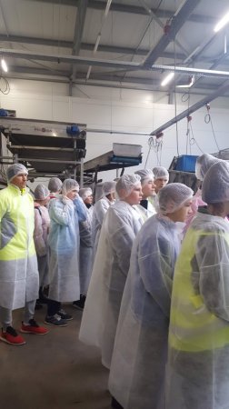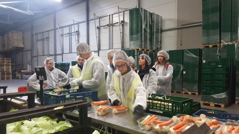 Na początku spotkania zostały omówione zasady BHP firmy FRESH KAL. Uczniowie z zainteresowaniem przyglądali się maszynom, które sortowały i pakowały