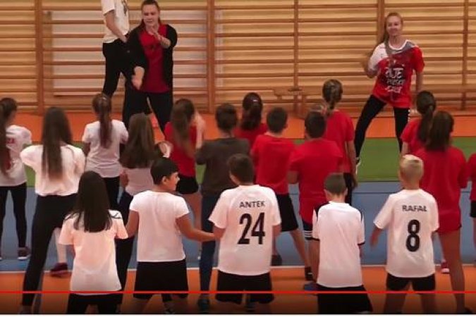 części zumby poprowadzonej przez uczennice klas VI i V.