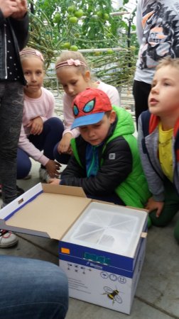 zainteresowaniem spotkało się odkrycie w szklarni uli z trzmielami, które zapylają kwitnące