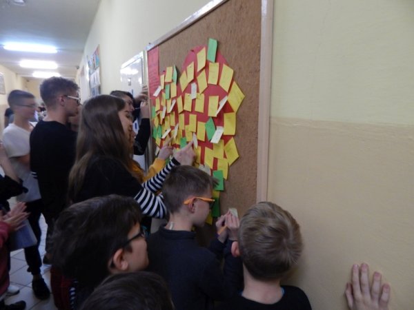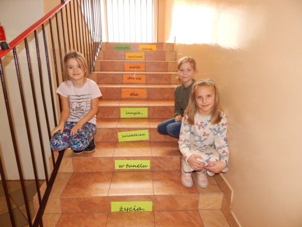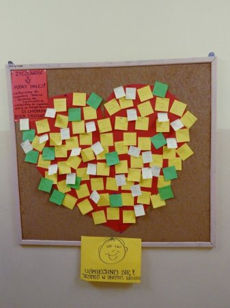 szkole zostały udekorowane przysłowiami, dotyczącymi życzliwości i uśmiechu,