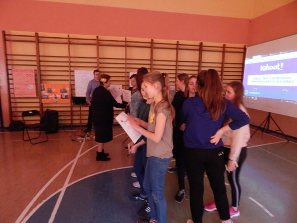 zastosowaniem programu „Kahoot!”. Rozwiązując zadania, uczniowie musieli