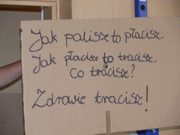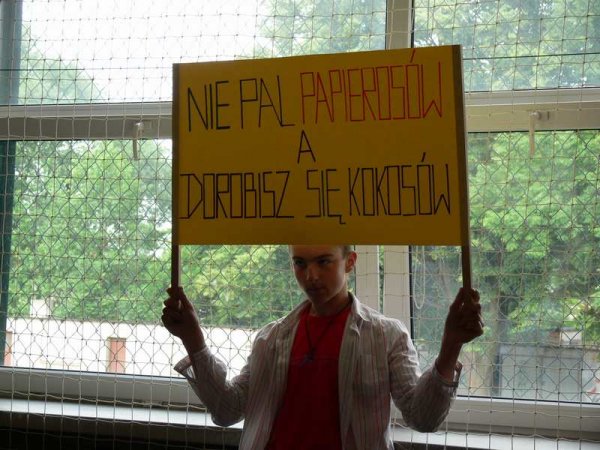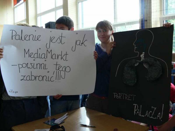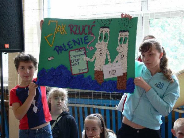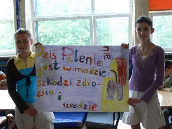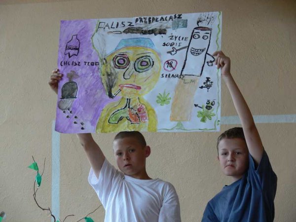 01.06.2007 r. w Zespole Szkół w Stawiszynie odbył się turniej pt. "Dym z papierosa szkodzi, gdy się do szkoły chodzi". Przeprowadzoni go w dwóch grupach wiekowych. Pierwsza grupa to uczniowie klas IV-VI SP, druga grupa klasy I-III Gim. Celem turnieju było uświadomienie uczniom jaki wpływ ma palenie papierosów na ich młode organizmy. Realizując poszczególne zadania turniejowe uczniowie prezentowali hasła i plakaty nt. szkodliwości palenia papierosów, układali puzzle, rozwiązywali krzyżówki oraz przedstawiali scenki, w których pokazali ciekawe sposoby odmawiania zapalenia papierosa. Turniej zorganizowała i przygotowała opiekunka Szkolnego Koła PCK, Filipina Baraniecka. W przedsię wzięcie to zaangażowali się również wychowawcy poszczególnych klas oraz nauczyciele wychowania fizycznego z ZS w Stawiszynie.