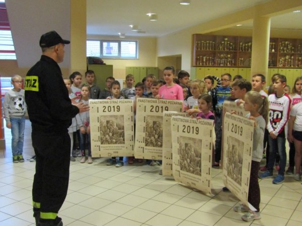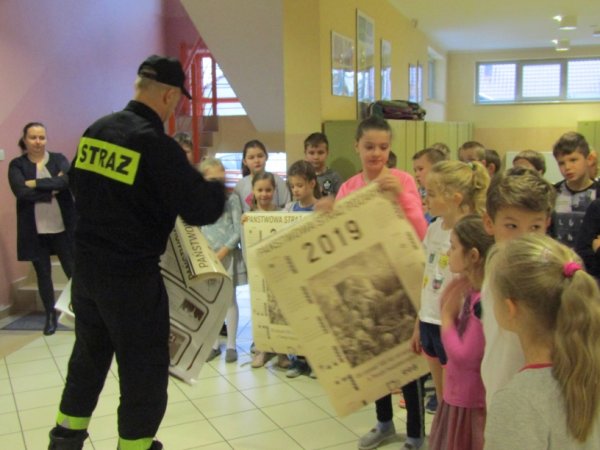 a przedstawicieleklas otrzymalikalendarze Powiatowej Straży Pożarnej na 2019