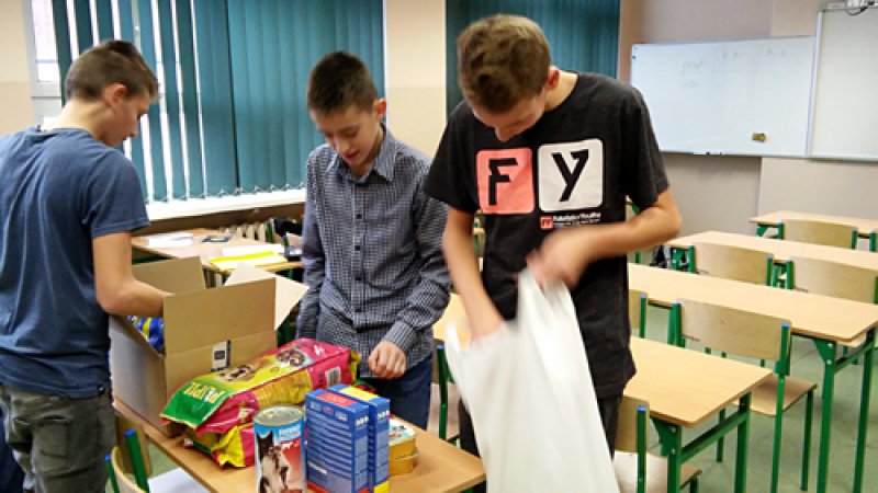 Po raz trzeci w naszej szkole zorganizowana została zbiórka karmy dla podopiecznych schroniska dla bezdomnych zwierząt. Uczniowie naszej szkoły z wielkim zaangażowaniem i z wielkim sercem zbierali karmę dla zwierząt. Akcja zakończyła się przekazaniem karmy