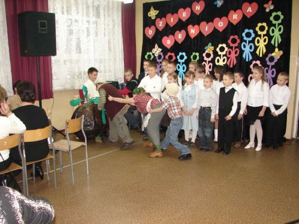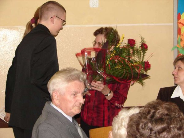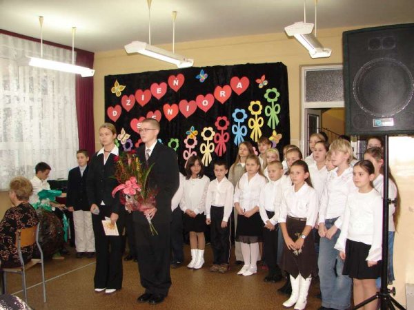 Juniorzy przygotowali dla Seniorów miłą niespodziankę. Słowami wierszy i piosenek wyrazili swoją wdzięczność dla Babć i Dziadków. Na ręce przewodniczącej Koła Emerytów p. Łucji Sieradzkiej juniorzy złożyli kwiaty i życzenia z okazji Dnia Seniora. Nastrój spotkania był wyjatkowy, Seniorzy nie kryli łez wzruszenia.