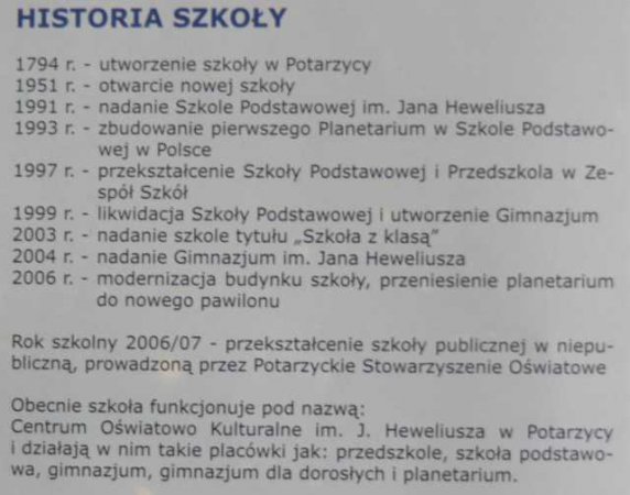 14 grudnia 2007 r. uczniowie kl. II i III Gimnazjum pod opieką nauczycielek: Grażyny Galant, Ewy Nowackiej, Ludmiły Jezierskiej oraz Elżbiety Rąckiej byli na wycieczce do Planetarium w Potarzycy k. Jarocina.