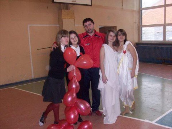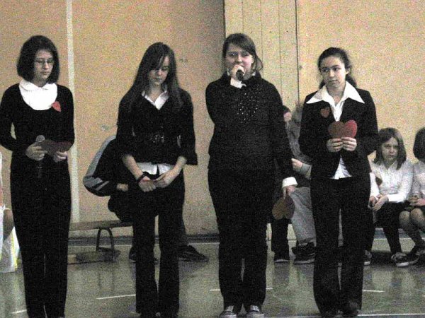 Joanna Brajer) rozdawały nauczycielom walentynki.