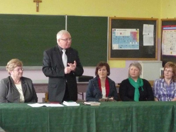 Kulisy pracy poselskiej odsłonił przed uczniami Gimnazjum w Stawiszynie pan Józef Racki poseł na Sejm RP, którego powitała dyrektor szkoły Joanna Woszczyk.