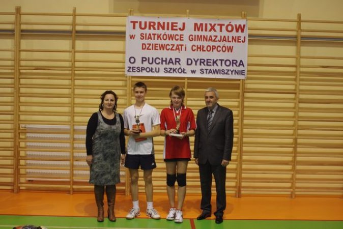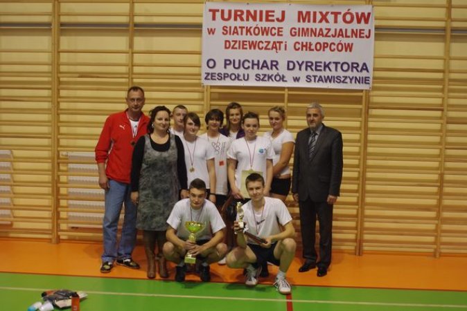 W stawiszyńskim gimnazjum efektownie i efektywnie realizowany jest program: "Trzymaj formę". Dobre pomysły są z powodzeniem kontynuowane, dlatego też już po raz drugi odbył się Powiatowy Turniej Mixtów w Gimnazjalnej Piłce Siatkowej Dziewcząt i Chłopców o Puchar Dyrektora Zespołu Szkół w Stawiszynie. 22 października 2010r. w Hali Sportowo-Widowiskowej przy Zespole Szkół w Stawiszynie spotkało się 10 drużyn: finaliści ubiegłorocznego turnieju: Stawiszyn I, Stawiszyn II, Koźminek oraz Blizanów, Dębe, Janków, Lisków, Opatówek, Wola Droszewska, Zbiersk. Sportowa rywalizacja rozpoczęła się o gier w 3 grupach eliminacyjnych: Grupa 1. Stawiszyn 1, Janków, Blizanów Grupa 2. Opatówek, Koźminek, Dębe Grupa 3. Zbiersk, Stawiszyn 2, Wola Droszewska, Lisków. Po zaciętych dynamicznych meczach grupowych do półfinałów awansowały drużyny z Koźminka i Zbierska ( I półfinał) oraz Stawiszyn 1 i Stawiszyn 2 (II półfinał). Mecz finałowy zakończył się zwycięstwem drużyny z Koźminka, która po efektownej grze pokonała drużynę Stawiszyn 1, a w meczu o 3 miejsce bezkonkurencyjni okazali się siatkarze i siatkarki ze Stawiszyna 2, zwyciężając drużynę ze Zbierska. Warto dodać, że te dwie drużyny rywalizowały także w eliminacjach grupowych.