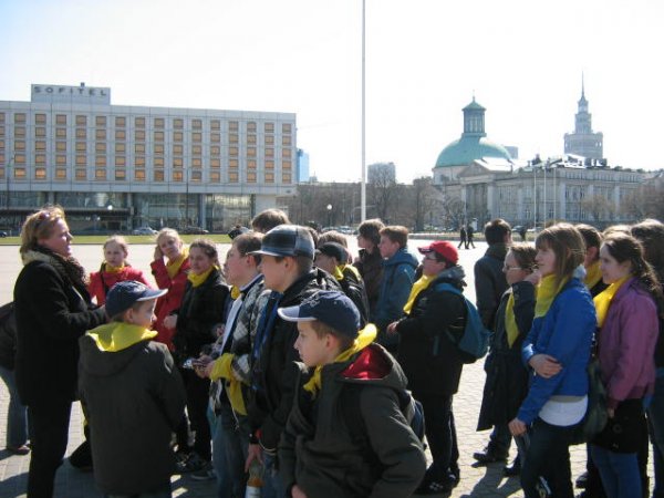 odwiedzili ważne miejsca miasta: Pałac Prezydencki, Kolumnę Zygmunta, Stadion