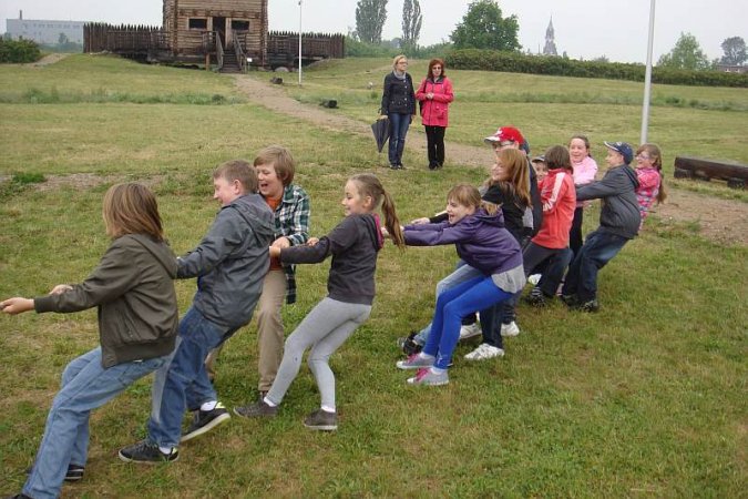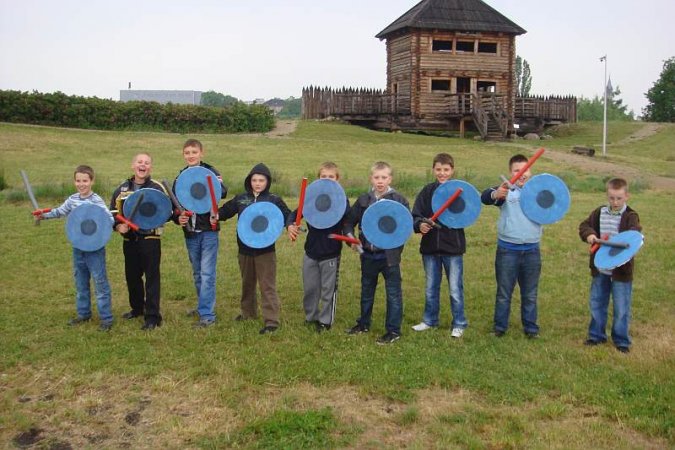 przymierzali strój woja, wybijali monety i strzelali z łuku.