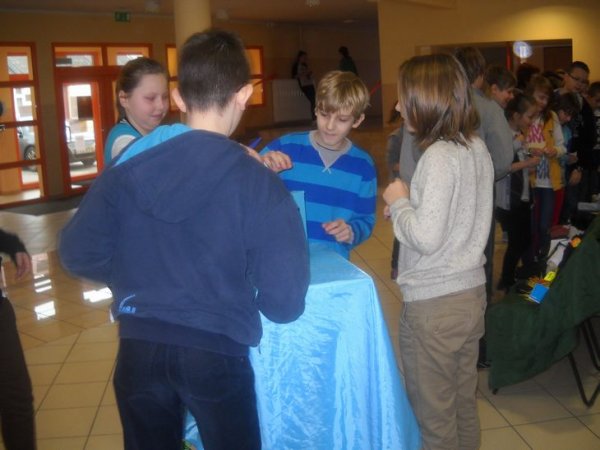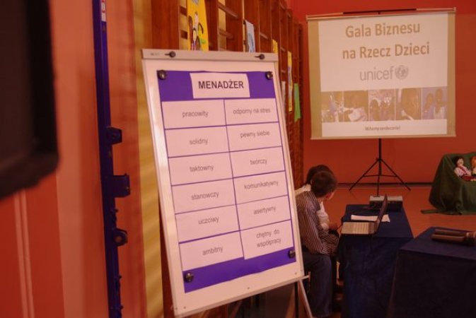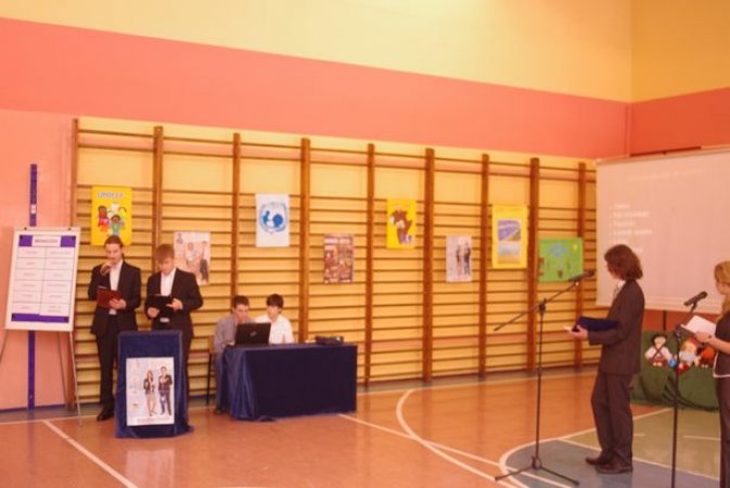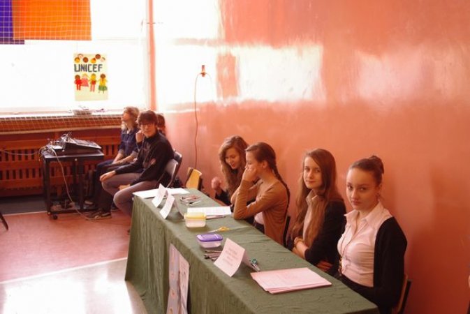 Na zaproszenie dyrektor szkoły Joanny Woszczyk, jak zawsze przychylnie nastawionej do globalnych inicjatyw, odpowiedzieli swym przybyciem lokalni przedsiębiorcy: pan Wiesław Majtas - firma DREWPAL, pan Michał Nawrocki - firmaTRANS, pani Ewa Rogacka - firmaEWIMA, pani Anna Michalska - Lecznica dla zwierząt STAWET, pani Patrycja Łusiaczyk - Pizzeria MILANO, pani Beata Jarentowska - kwiaciarnia MAGNOLIA, pani Bernardeta Waszak - Przedsiębiorstwo Usługowo-Handlowo-Produkcyjne MŁYNARSTWO, pani Elżbieta Pilarska - Przedsiębiorstwo Handlowe PILARSKI, pani Ewa Górna - lekarz stomatolog, właściciele sklepów: pani Małgorzata Pilarska, pani Elżbieta Grajnert, pan Andrzej Kornacki. Uczniowie edukowali zebranych w zakresie pomocy humanitarnej, prezentując ją jako formę inwestycji w życie dziecka. Gimnazjaliści przedstawili swoje biznesplany, które opracowywali w ramach zajęć podstawy przedsiębiorczości. Zachęcali do zainwestowania w artykuły pomocy humanitarnej, tzw. prezenty bez pudła. Podczas spotkania zebrano kwotę w wysokości 1440,00 zł, zadeklarowano wpłatę 300,00 zł na konto Unicef.