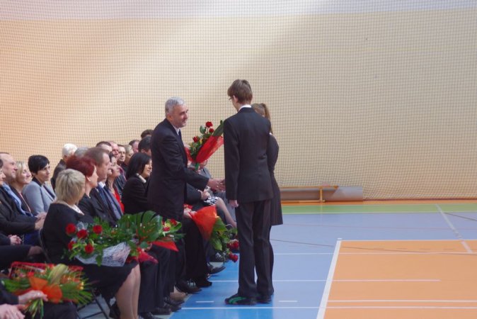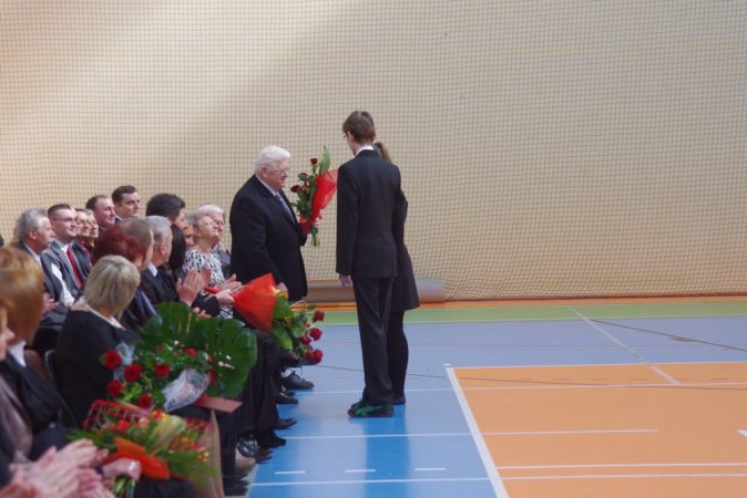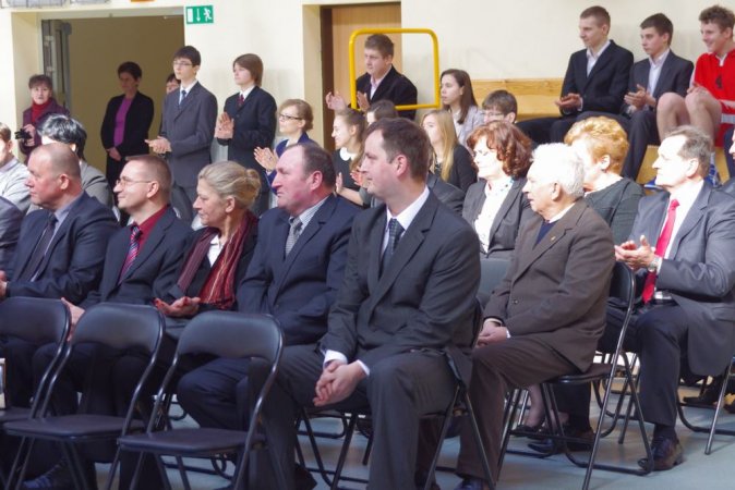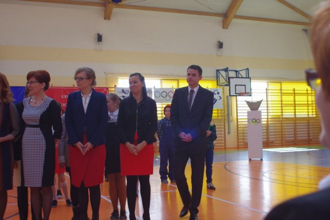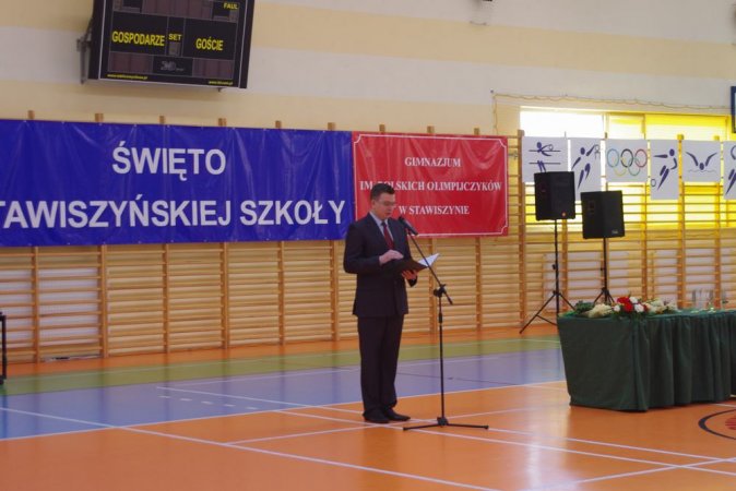 Sztafeta z pochodnią i zapalenie znicza rozpoczęły uroczystości nadania Gimnazjum w Stawiszynie imienia Polskich Olimpijczyków. Uchwałę w przedmiotowej sprawie odczytał pan Andrzej Rachwał – przewodniczący Rady Miejskiej w Stawiszynie. Następnie głos zabrał gość honorowy uroczystości pan Dariusz Goździak –