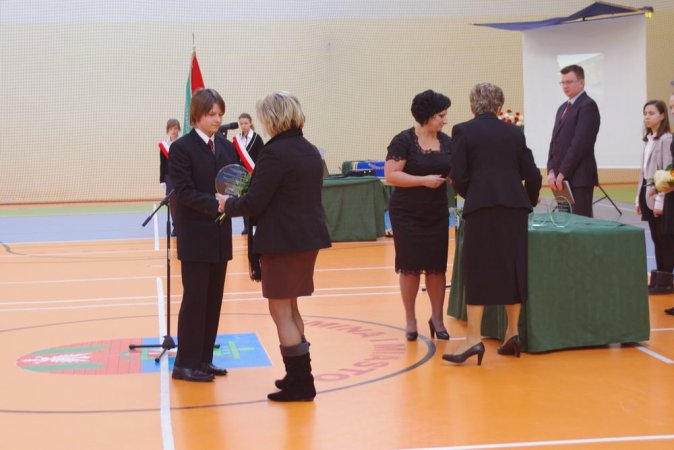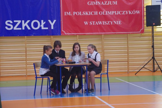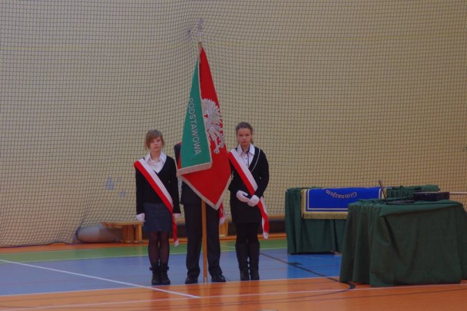 gimnazjum sztandar, którego fundatorem jest absolwent stawiszyńskiej szkoły – pan Piotr Polaszczyk.