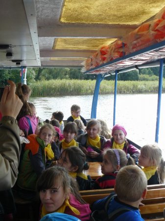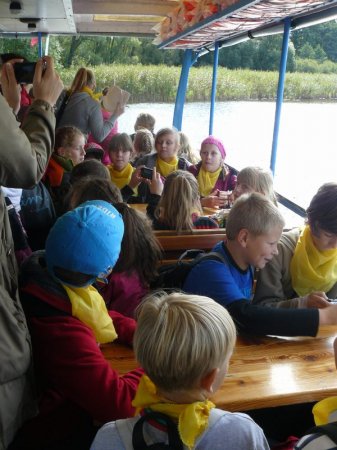 Uczniowie płynęli statkiem po jeziorze biskupińskim a także zwiedzali Muzeum Kolejki Wąskotorowej i ruiny zamku w Wenecji.