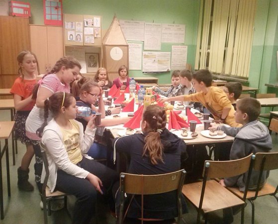 Adamczewską, zorganizowała spotkanie andrzejkowe. Klasowy poczęstunek