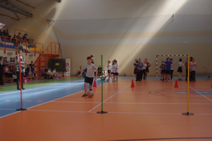 uczestnicy mieli związane nogi, strzelali do pustej bramki. Jeśli zawodnik