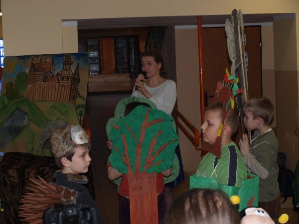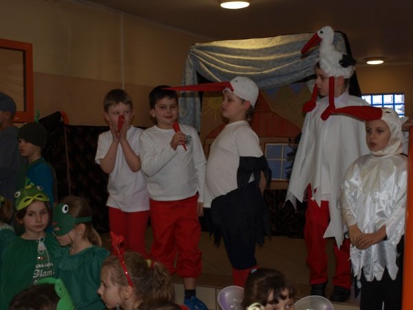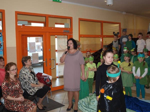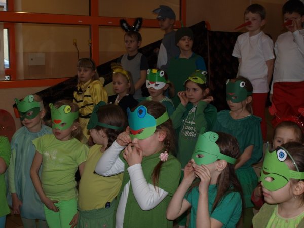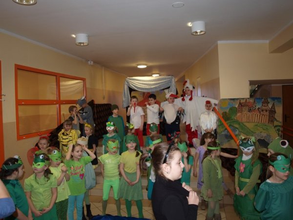 Pierwszaki przedstawiły spektakl pt.: ”Żuczek i żabki” przygotowane pod