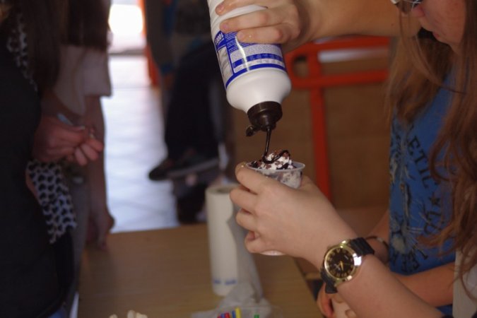 ziemniaczane oraz zimne napoje i lody. Działała kawiarenka, w której rodzice