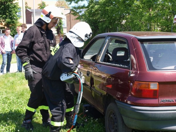 mogły podziwiać ich w akcji niesienia pierwszej pomocy powypadkowej, a także