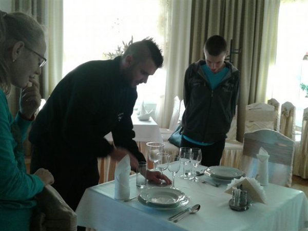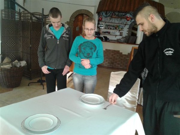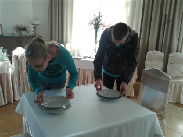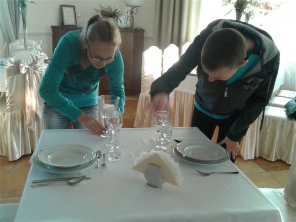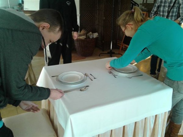 naszym uczniom ułożenie sztućców, talerzy i serwetek :)