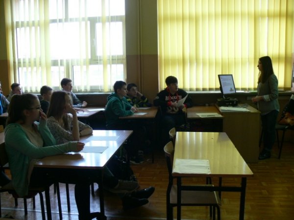 Na zaproszenie pani pedagog Agnieszki Roszak-Janowskiej w dniach 2 marcai 13 kwietnia 2015r. uczniowie Szkoły Podstawowej im. Wincentego Polai Gimnazjumim. Polskich Olimpijczyków uczestniczyli w lekcjach międzynarodowych. Pracownicy Regionalnego Ośrodka Debaty Międzynarodowej z Poznania, pani Ada Wesołowskai pani Izabela Mójta w bardzo atrakcyjny sposób przeprowadziły zajęcia warsztatowedla uczniów. Zakres tematyczny był szeroki, gdyż klasy miały omawiane różne zagadnienia. Uczniowie klas trzecich szkoły podstawowej doskonale rozszyfrowali grę ekologicznąi poznali symbole ekologiczne. Czwartoklasiści z wielką radością podróżowali po krajach Unii Europejskiej i poznali wiele ciekawostek z przewodnikiem Syriuszem. Z kolei uczniowie klas piątych utwierdzili się w grze z pająkiem ekologicznym, że są „jestem Eko – jestem spoko”. Szóstoklasiści imponująco zaprezentowali postawy obywatelskie i patriotyczne. Gimnazjaliści z klas pierwszych podjęli dyskusje o globalnych problemach współczesnego świata. Uczniowie drugich klas gimnazjum omawiali na przykładach łamanie praw człowieka. Młodzież z trzecich klas gimnazjum podjęła temat historii integracji europejskiej.