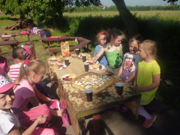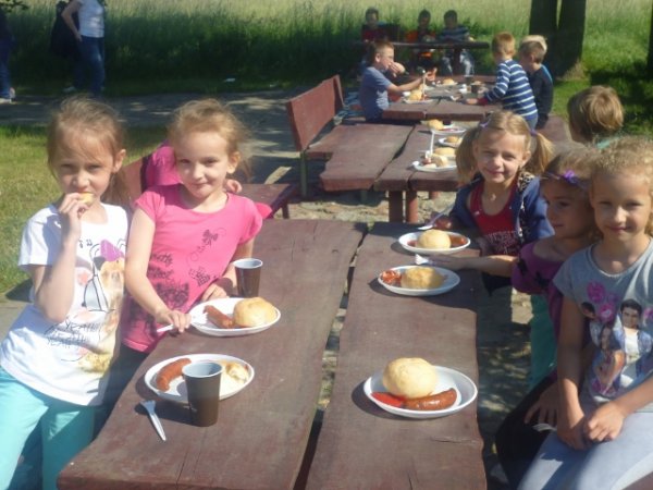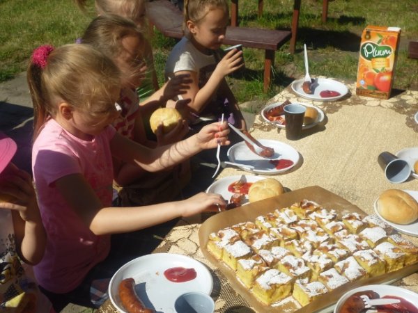 Wszystkim uczestnikom zapewniono poczęstunek przygotowany wspólnie na grillu, a ciasta upieczone przez mamy bardzo smakowały maluchom. Dzieci obdarowano też słodyczami i innymi smakołykami.