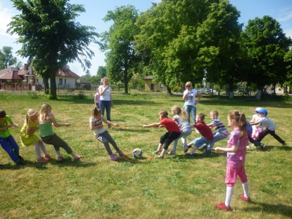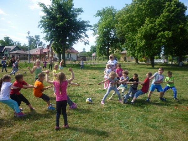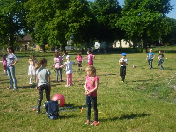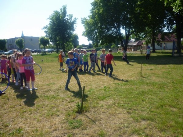 Odbyło się wiele konkursów tj. przeciąganie liny, rzut ringiem do celu, mecz piłkarski, tor przeszkód, przeplatanki, wyścigi w workach itd. Pierwszoklasiści w czasie odbywania zawodów zbierali punkty. Okazało się że dzieciom bardzo spodobała się rywalizacja i trzeba było zorganizować dogrywkę. Jednak zwycięzcami byli wszyscy uczestnicy zabawy.