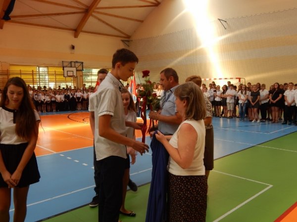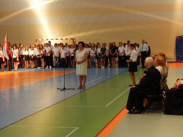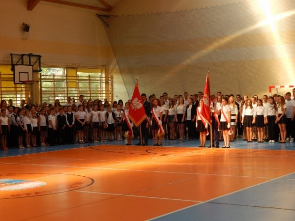 W dniu 1 września 2015 r. powitaliśmy nowy rok szkolny. W uroczystości wzięli udział: ksiądz proboszcz Jakub Piotrowski, pani Justyna Urbaniak – burmistrz Stawiszyna, przedstawiciele Rady Rodziców: pani Jolanta Wcisłek, pani Magdalena Kit-Krawczyk, pani Anna Jagiełło oraz nauczyciele, pracownicy szkoły, uczniowie i rodzice. Minutą ciszy uczciliśmy pamięć o tych wszystkich, którzy bronilili naszej wolności. Pani dyrektor Joanna Woszczyk powitała zgromadzonych w nowym roku szkolnym oraz złożyła życzenia nauczycielom obchodzącym jubileusz pracy zawodowej: pani wicedyrektor Ewie Nowackiej, pani Annie Skrzypiec, pani Halinie Kowalskiej oraz panom: Andrzejowi Liberskiemu oraz Pawłowi Woszczykowi. Następnie uczniowie klas pierwszych Szkoły Podstawowej złożyli ślubowanie i w ten sposób zostali przyjęci w poczet uczniów szkoły. Przedstawicielka SU – Natalia Myszkowska życzyła nauczycielom i uczniom sukcesów w nowym roku szkolnym i satysfakcji z wykonywanych zadań oraz radości z podjetych wyzwań.