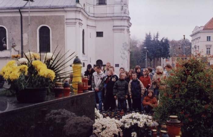 03 listopada 2005r.uczniowie Zespołu Szkół w Stawiszynie zapalili symboliczne znicze pod pomnikiem Jana Pawła II w Kaliszu. Oddali w ten sposób cześć i hołd naszemu zmarłemu Papieżowi-Rodakowi.