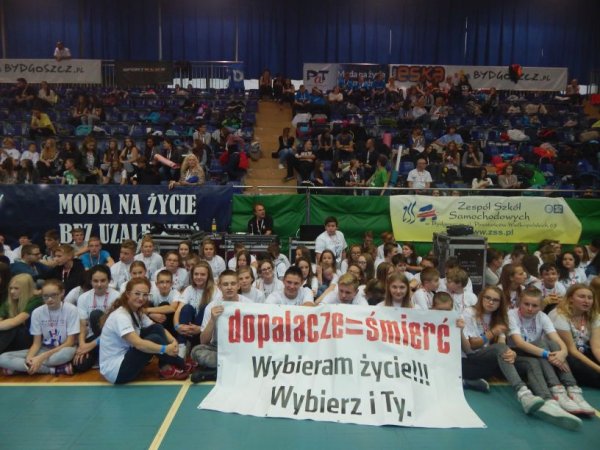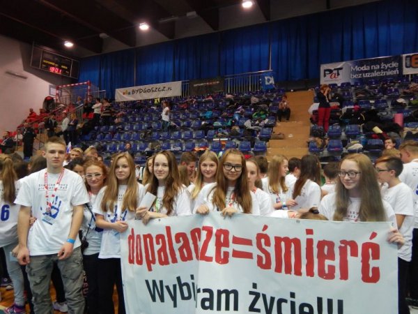 „Dopalacze = śmierć . Wybieram życie. Wybierz i Ty”. Wszyscy uczniowie pięknie