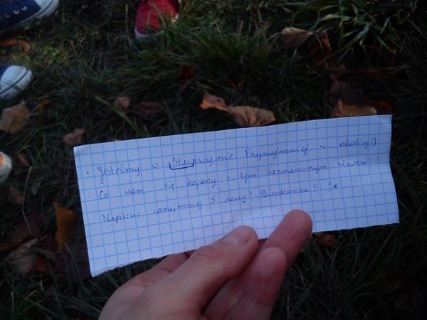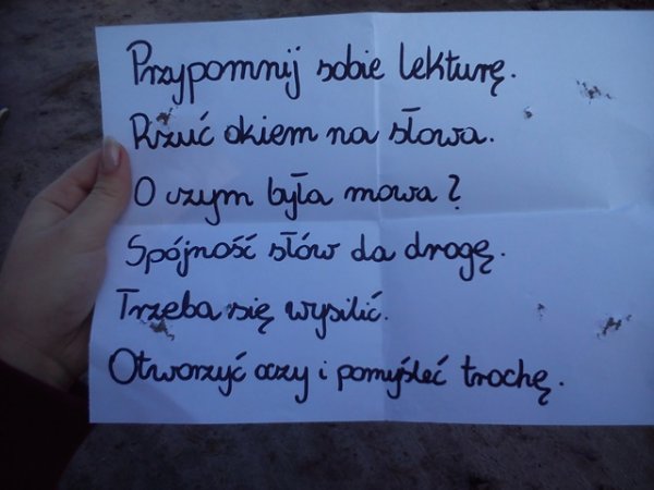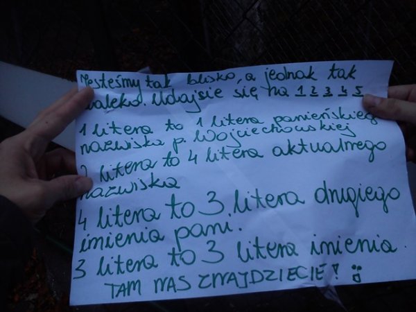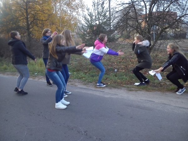Dziewczęta klas gimnazjalnych przez ostatnie parę tygodni korzystały z uroków przepięknej polskiej jesieni w czasie podchodów drużynowych w ramach zajęć wychowania fizycznego. Drużyny uciekające w bardzo wyszukany, sprytny i zabawny sposób starały się zmylić drużyny goniące, co doprowadziło do wielu zabawnych sytuacji. Drużyny szukające musiały wykonywać zadania sprawnościowe, poszukiwać ukrytych przedmiotów i wskazówek, odpowiadać na pytania matematyczne, językowe, historyczne, biologiczne, geograficzne a także z wiedzy ogólnej, czyli były tzw. Pytania "z życia wzięte". Pomysłowość drużyn uciekających była godna podziwu. Dziewczęta bardzo się zaangażowały w przeprowadzenie zadań, a przygotowane łamigłówki i “zmyłki” były bardzo wyszukane i dobrze przemyślane.