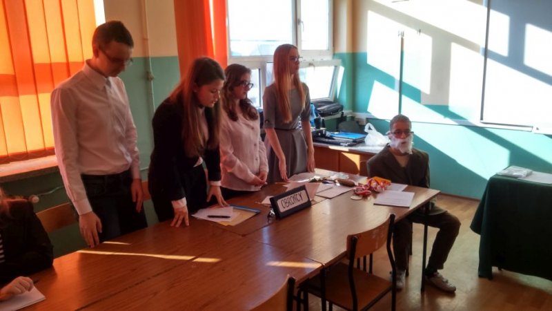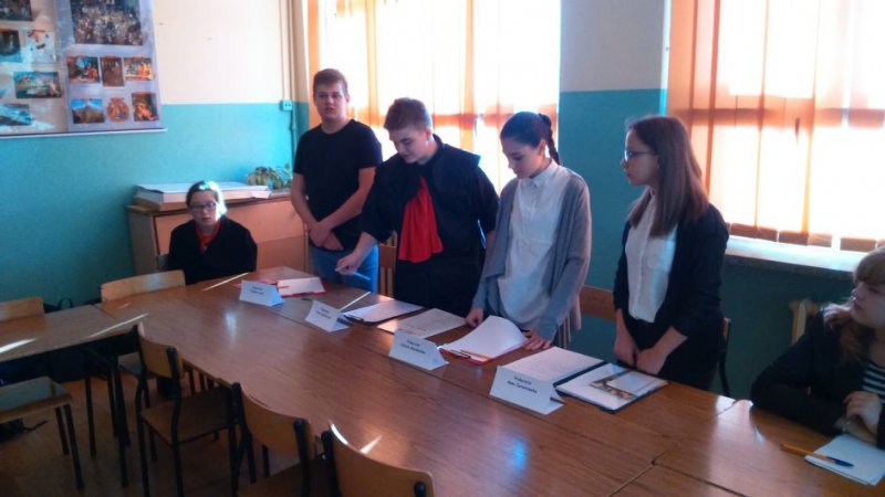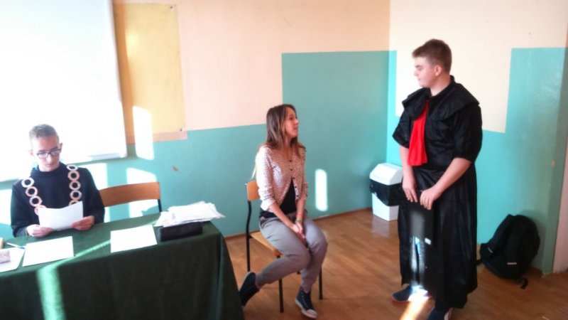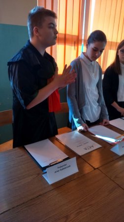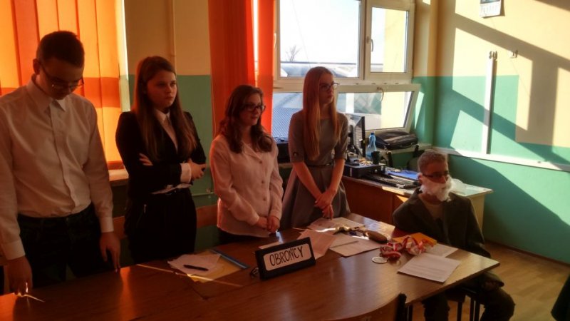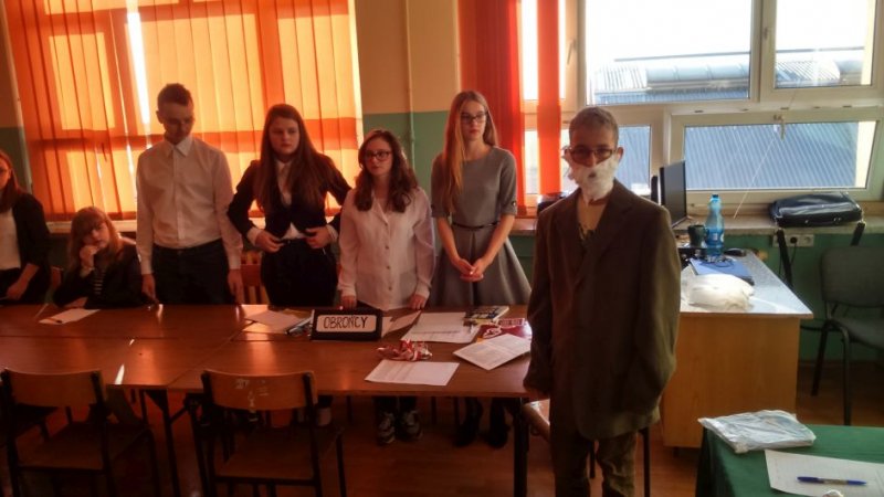 się niezwykła lekcja języka polskiego - uczniowie klasy II b gimnazjum przygotowali rozprawę sądową. Oskarżonym był