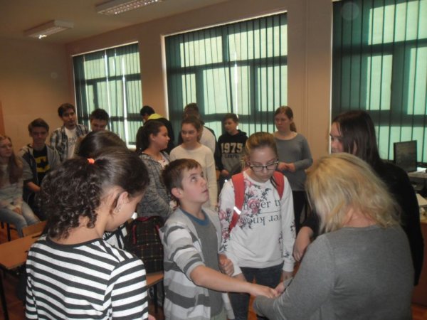 nauczyciela, gdzie losowały i rozwiązywały zadanie językowe. Utrudnieniem dla