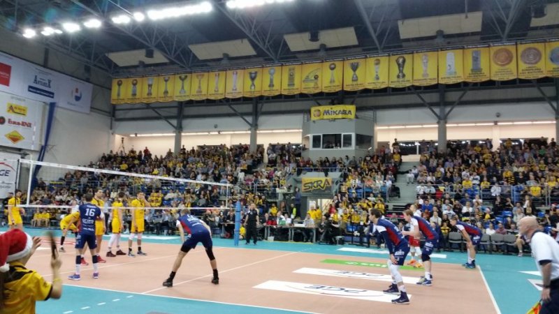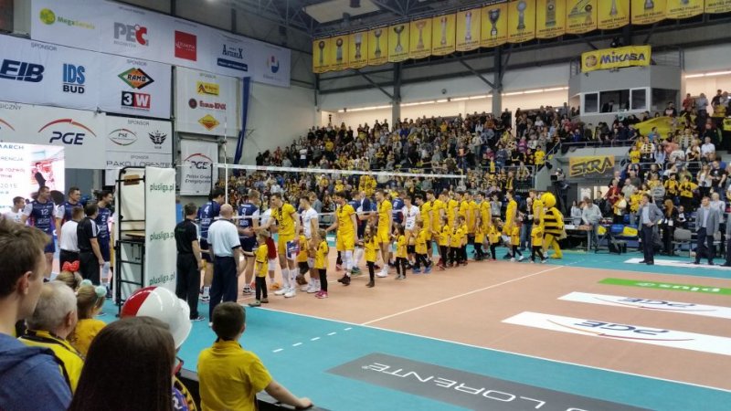 kolejki PlusLigi męskiej siatkówki między zespołamiSkry Bełchatów i Zaksa Kędzierzyn-Koźle. Mecz