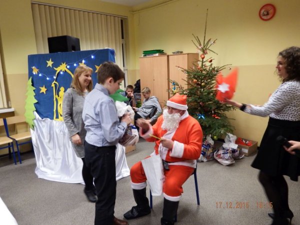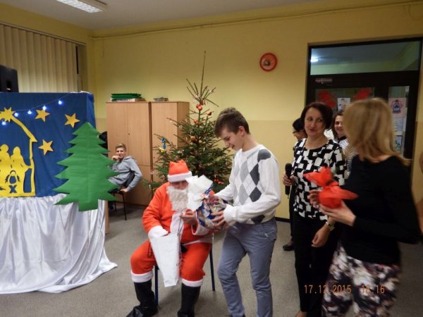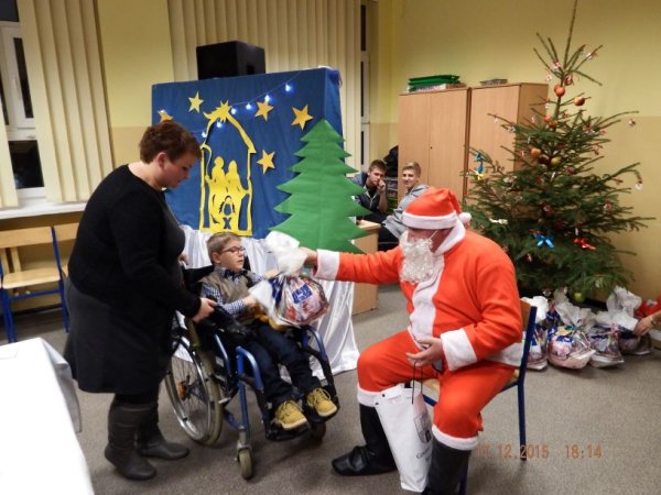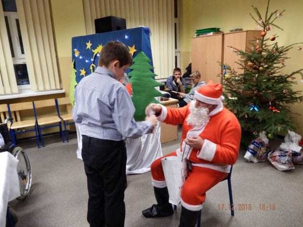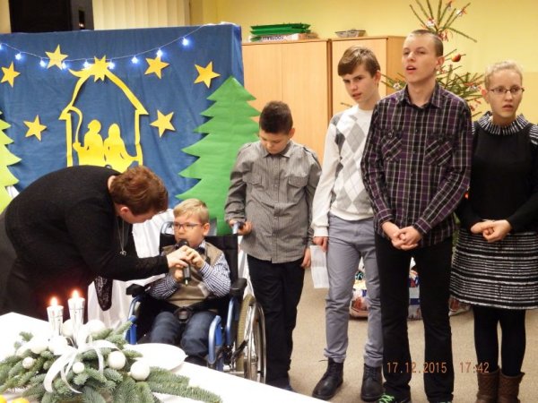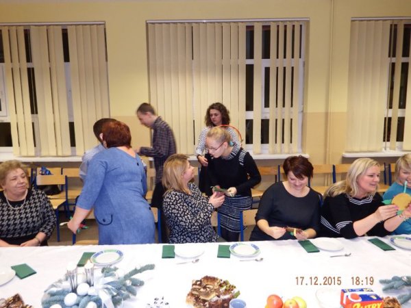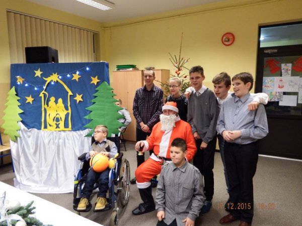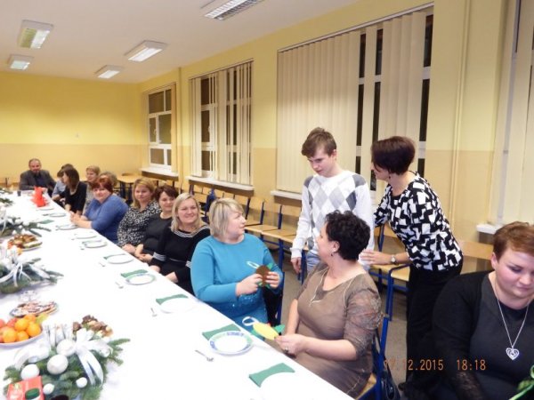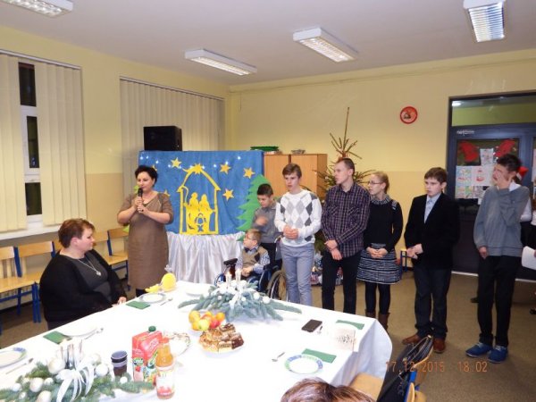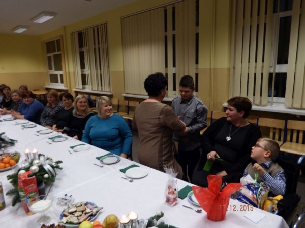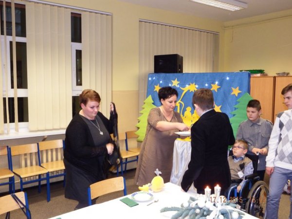 W czwartkowe popołudnie 17 grudnia 2015r. zasiedli do świątecznego stołu uczniowie o specjalnych potrzebach edukacyjnych wraz z rodzicami, nauczycielami i zaproszonymi gośćmi: Burmistrz Stawiszyna Justyną Urbaniak, dyrektor szkoły Joanną Woszczyk, zarządem Rady Rodziców- Anną Jagiełło, Jolantą Wcisłek, Magdaleną Kit- Krawczyk.