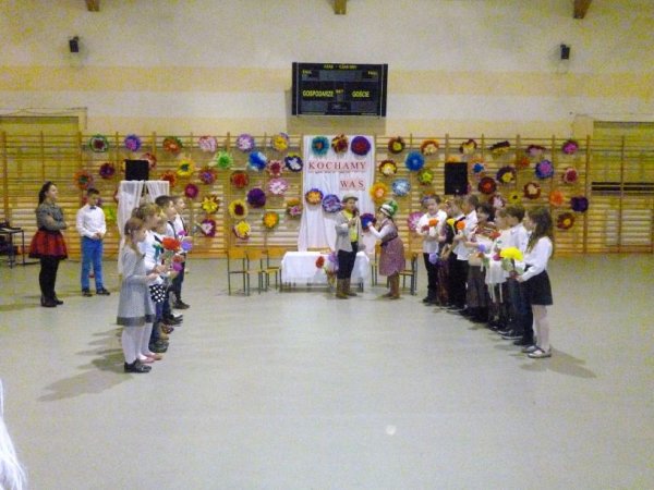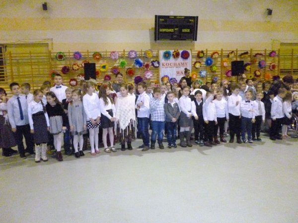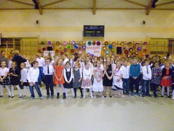 Do występów dzieci przygotowały wychowawczynie. W trakcie uroczystości Babcie i Dziadkowie mogli podziwiać swoje pociechy w różnych formach artystycznych. Mali artyści z przejęciem odtwarzali swoje role, a czcigodni goście ze wzruszeniem odbierali czułe słowa, kierowane pod ich adresem. Program artystyczny zapewnił przybyłych gości o tym, że ich wnuczęta posiadają zdolności recytatorskie, muzyczne oraz aktorskie. W drugiej części uroczystości Babcie i Dziadkowie zostali obdarowani laurkami i prezencikami oraz słodkim poczęstunkiem przygotowanym przez rodziców uczniów klas I-III. Frekwencja była wspaniała. Przybyło ponad 350 zaproszonych gości. Dziękujemy im za to serdecznie. Gorące słowa podziękowania należą się również rodzicom, którzy nie tylko dowieźli honorowych gości na uroczystość, ale okazali dużą pomoc w przygotowaniu i przeprowadzeniu imprezy zorganizowanej przez wychowawczynie klas młodszych: panie: Małgorzatę Anczykowską, Filipinę Baraniecką, Jolantę Ciesielską, Izabelę Drzewiecką, Danutę Łuczak, Iwonę Osajdę, Darię Wojtczak, Renatę Zielińską .