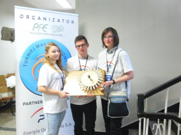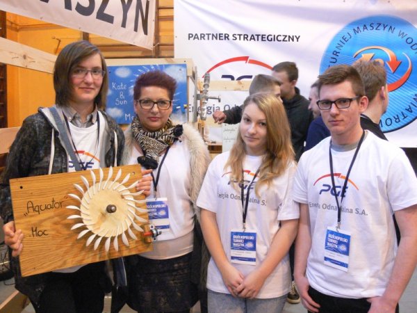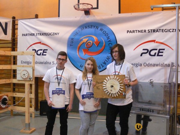 W dniu 27.02.2016r. w Poznaniu odbyły się eliminacje regionalne V Ogólnopolskiego Turnieju Maszyn Wodnych, w których brały udział gimnazja z województw: wielkopolskiego, lubuskiego, dolnośląskiego i opolskiego. W Turnieju Maszyn Wodnych turbiny wykonane przez uczniów konkurują w dwóch niezależnych konkurencjach : „MOC”, „WYDAJNOŚĆ”. Zadaniem uczestników turnieju było wykonanie maszyny wodnej zdolnej podnieść ciężar 2,5 kg na wysokość 4 metrów w jak najkrótszym czasie . W drugiej konkurencji mierzono zużycie wody . Uczniowie z Gimnazjum w Stawiszynie jako Drużyna „AQATORZY” w składzie: Magdalena Karolak kl. III b, Katarzyna Różańska kl. III b, Bartosz Pośpiech kl. III b pod opieką nauczycielki Izabeli Drzewieckiej startowali w konkurencji „Moc”, zajmując w klasyfikacji końcowej 8 miejsce. Turniej to nie tylko rywalizacja, ale także świetna zabawa, podczas której zawodnicy poszerzają swoje horyzonty, wymieniają się doświadczeniami i mogą nawiązać ciekawe znajomości z rówieśnikami z całej zachodniej Polski.