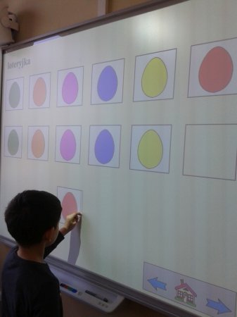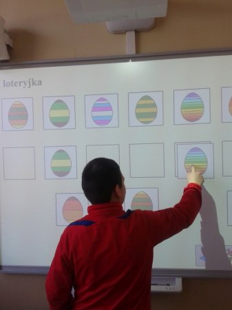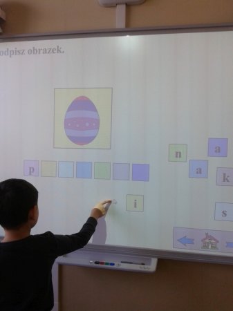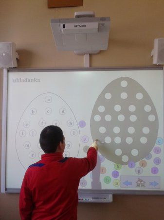 W pracy rewalidacyjnej i terapii logopedycznej wykorzystujemy nowe technologie wspomagające proces nauki. Zajęcia WIELKANOCNE ZABAWY-Wojtek i Wiktor są zafascynowani możliwościami tablicy interaktywnej.