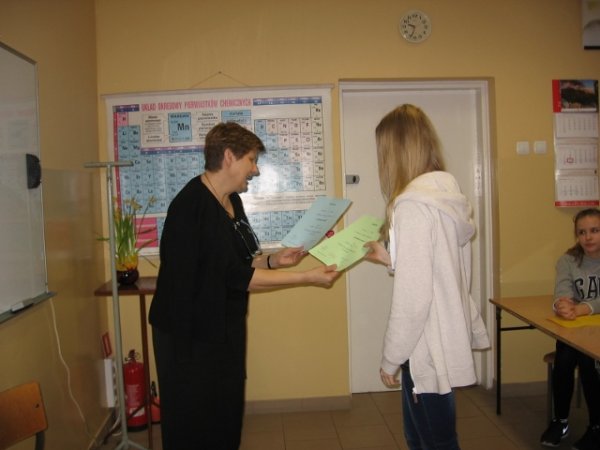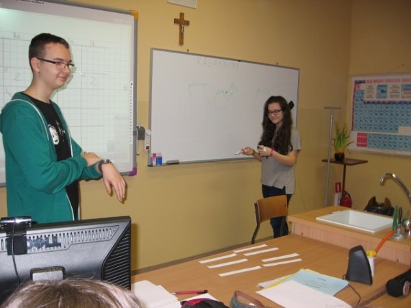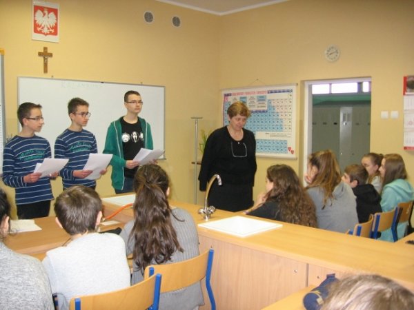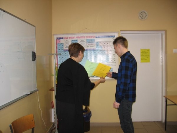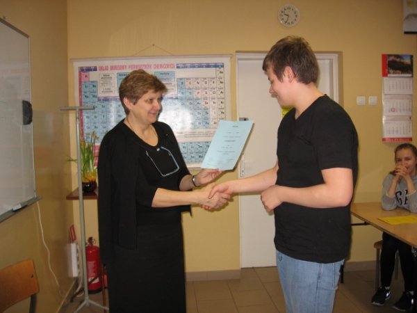 Konkurs przygotowali uczniowie klasy II b realizujący projekt gimnazjalny: Michał Woszczyk, Bartosz Woszczyk, Błażej Sobczak pod opieką nauczycielki chemii Grażyny Galant.