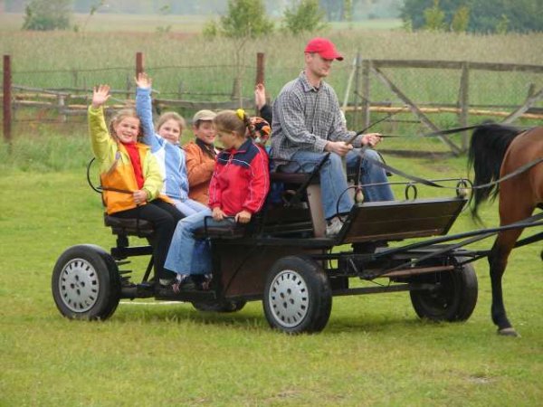 Z okazji Dnia Dziecka klasy IIa i IIb szkoły podstawowej wybrały się na wycieczkę do gospodarstwa agroturystycznego „ZWIERZYNIEC” w Modlibogowicach. Dzieci oglądały zwierzęta tj.: strusie, pawie, kucyki, małpki, bażanty, wielbłąda, kozy, króliki oraz konie. Dużą atrakcją cieszyła się jazda w siodle na kucyku, a także jazda bryczką po całej fermie. Do dyspozycji dzieci był plac zabaw – karuzela, zjeżdżalnie, piaskownice i mnóstwo zielonej przestrzeni, gdzie dzieci się świetnie bawiły. Na zakończenie odbyło się pieczenie kiełbasek przy ognisku. Dzieci wprawdzie nieco przemoknięte, ale pełne wrażeń wróciły do szkoły. Wycieczkę zorganizowała wychowawczyni klasy IIb pani Renata Zielińska.