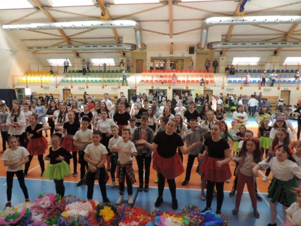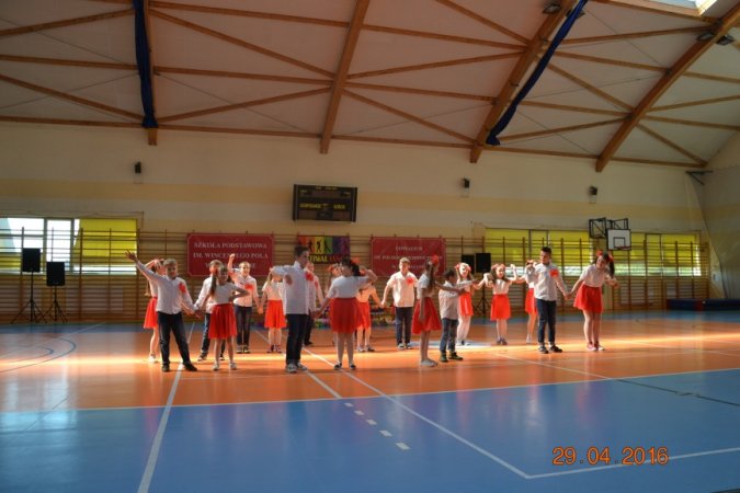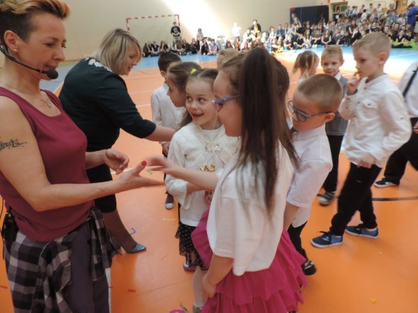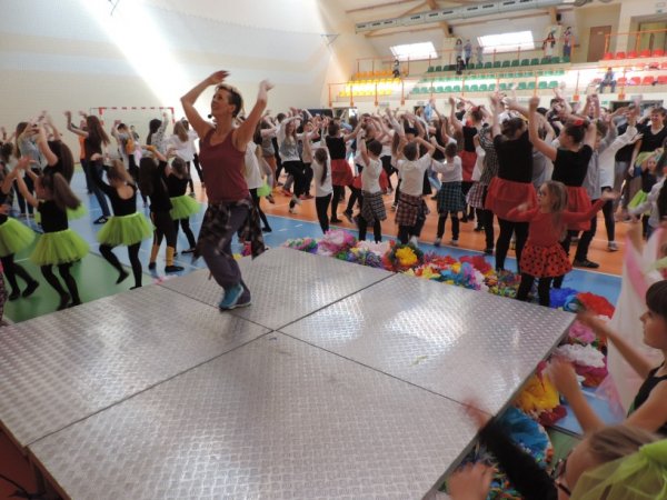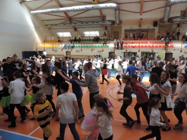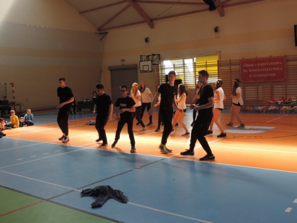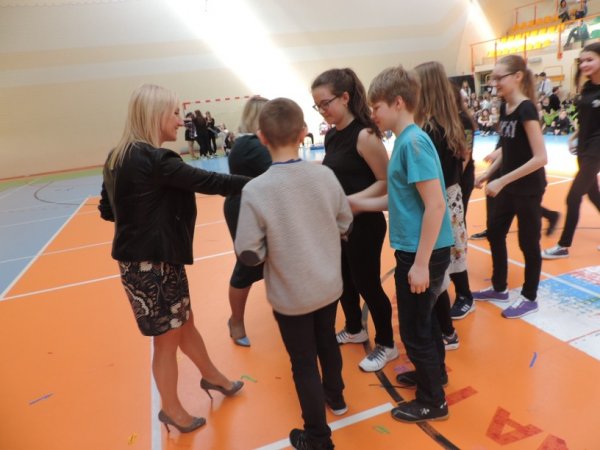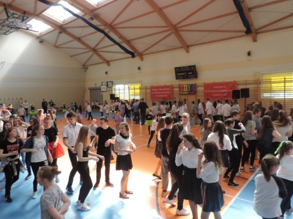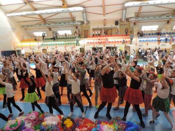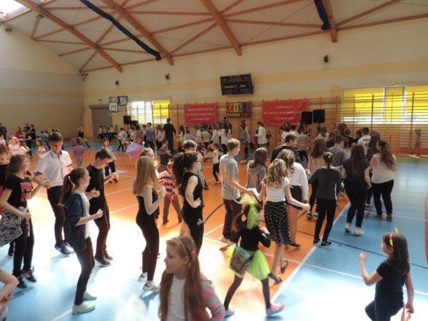 szkoła, uczniowie najmłodsi tańczyli z najstarszymi obok siebie, udowadniając, że taniec też może łączyć pokolenia!!!!!!!!