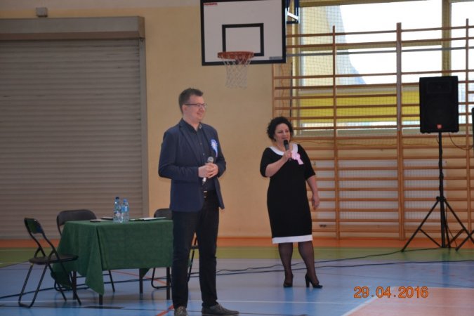 pan Przemysław Jarzębski oraz uczeń klasy 2a gimnazjum Eryk Pawłowicz jako